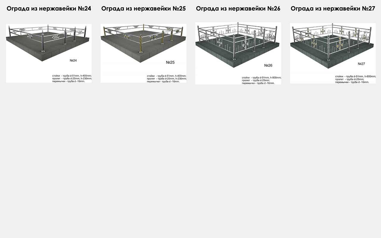 • Оградки из нержавейки совмещают в себе два качества – практичность и эстетичность. Выглядят презентабельно и защищают захоронение, не требуют особого ухода. Достаточно периодически протирать ветошью.
